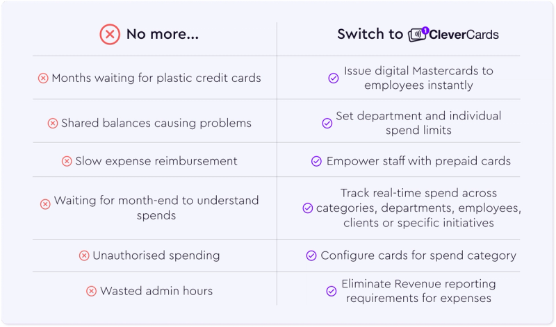 Take complete control of your business expenses with CleverCards prepaid digital Mastercards.